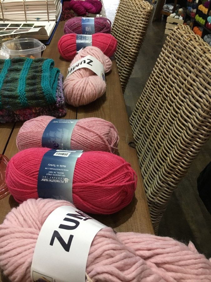 I wasn’t yet five when I arrived at my first knitting shop with my mom and her knitting bag of confusing shapes that eventually turned into a sweater. The shop was tucked into the side of a hill and the door seemed perched on a slope. I noticed that there wasn’t a sign from the road, but she still knew where to turn. Inside there was a wall of different kinds of yarn. I remember the smell, the communal table, the women.